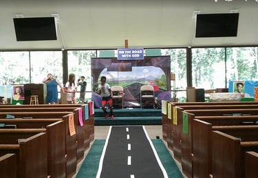 Our gallery has photos from our last two VBS themes: Road Trip (2025) and Camp Flashlight (2024)